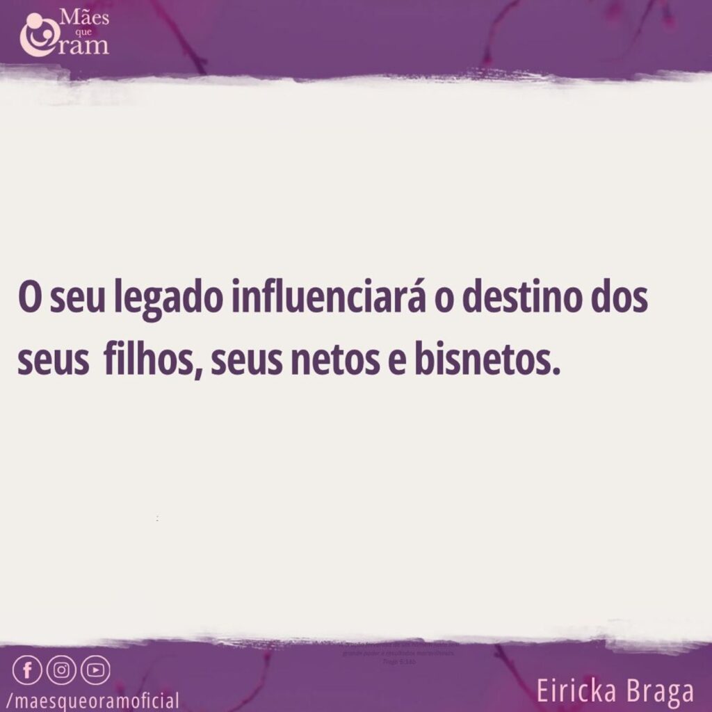 Cada uma de nós hoje que somos mães herdamos um legado de nossos ancestrais: faz parte do nosso direito de nascença. E cada uma de nós estamos registrando um legado para nossa posteridade : faz parte da herança que deixaremos para eles. Davi serviu ao propósito de Deus em sua própria geração, mas ele fez mais do que isso. Ele também deixou um legado para as gerações vindouras.